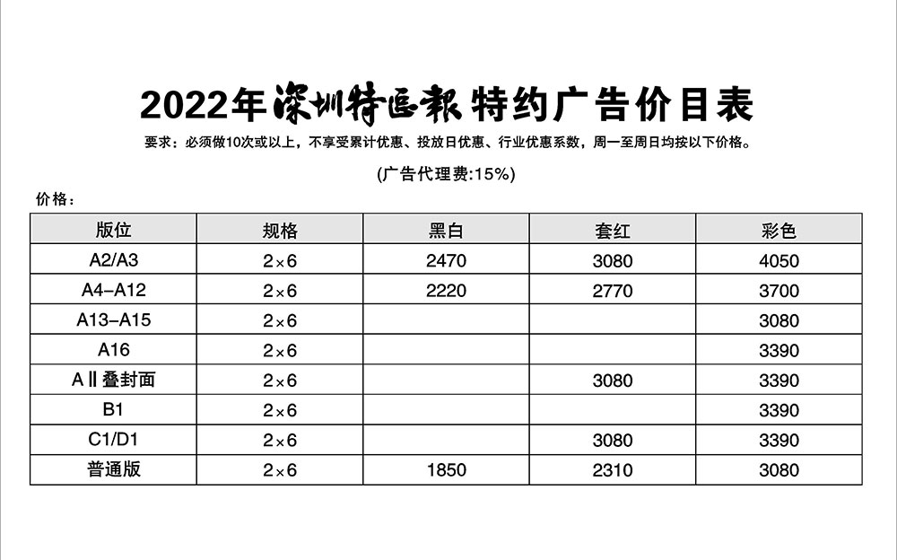深圳特區(qū)報(bào)特約廣告價(jià)目表