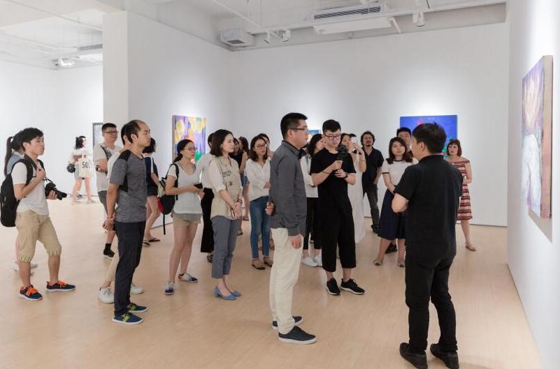 藝術家王頃給觀眾介紹作品
