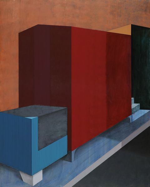 趙新宇從以往的作品中提取出了作品畫面的三個基本空間模型,“凹”“凸”“平”,并且在此次個展作品當中非??桃獾囊载Q構圖來強化這一理式概念,甚至試圖探究以往作品如果以一種“剩余”的狀態(tài)呈現(xiàn),意義生成的核心會發(fā)生怎樣的轉變。《室外#1垂直,傾斜》右下角垃圾箱輪子的處理,是以暗色塊暗示了原物的形態(tài),并沒有再做深入的刻畫,而實際上這一形態(tài)往往是作品底層的保留;《室外#3》右上部,你可以說是割破了的畫面,或者是基于無意識的,總之對于結構穩(wěn)定的畫面而言,像極了一次意外的產(chǎn)物。在某種意義上它超越了象征界,也即超越了經(jīng)驗所能夠涵蓋的內(nèi)容。但是新作當中似乎更有新的趨向,比如《室外#3》和《室外#4》兩件作品,一件觸及畫面的變形,另一件暖色調(diào)的嘗試則引發(fā)了某種藉里科式的憂郁,或許這是匱乏和剩余的并發(fā)癥,某種飄散的內(nèi)容甚至帶給人一種訴諸作品本身相反的感受。