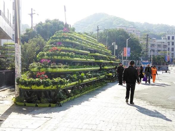 策展團隊了解到,村民感覺村里最可惜的已消失的事物,分別是老教堂、生產(chǎn)小隊糧倉以及以前一片田園風光的村道,于是設法將這些歷史記憶轉(zhuǎn)化為公共空間與公共生活建設的觸媒與主題。記者在現(xiàn)場看到,老教堂原址鄰近的新村有一條窄長口袋空間被雜亂停車所占用,這個空間現(xiàn)在被搭建成老教堂的燈光輪廓模型,有序梳理車流。長糧倉原址已經(jīng)是一棟四層的村集體新樓,短糧倉也成為一處遺址,建筑石材部件被街道辦組織工人及駐村藝術家鋪砌成尚留一段殘墻的小廣場。此外,還提出雨污嚴格分流、保留明溝走雨水山泉水的新規(guī)劃思路,改造上圍村公廁、整治垃圾站,啟動社區(qū)低廢棄和新農(nóng)業(yè)的試驗“肥田計劃”。