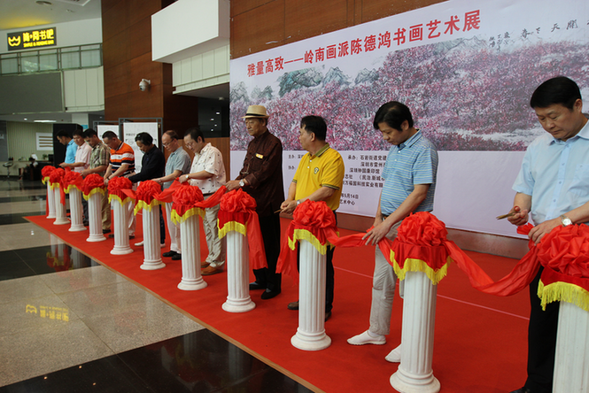 深圳新聞網(wǎng)訊(記者周錦春 通訊員孫善文)5月6日,雷州籍嶺南畫派青年畫家陳德鴻書畫藝術(shù)展在寶安區(qū)石巖文化藝術(shù)中心舉行,這是陳德鴻舉辦的第三十五場個人作品展,也是其在深圳地區(qū)舉辦的第七場。 本次畫展由寶安區(qū)美術(shù)家協(xié)會主辦,石巖街道黨建服務中心、深圳市雷州商承辦,廣東電視臺、深圳市湛江商會、深圳鐘國康印館、《書法報》深圳站、《伶仃洋》雜志社等單位協(xié)辦,展出了陳德鴻近期創(chuàng)作的60幅書畫作品, 200多名書畫名家和書法愛好者到場欣賞、祝賀,廣東電視臺及深圳多家媒體現(xiàn)場采訪報道。 ? “雅量高致”為陳德鴻在藝術(shù)上取得相當突顯的成績后,其大學導師、書畫名家周彥生先生所題贈,其意為氣度寬宏,情致高雅,雅正不俗。這四個字也成為本次展覽的主題。 嶺南畫派成立于上世紀三十年代,秉承“折衷中外,融合古今”這一宗旨,不但保留了屬于自己的藝術(shù)風格及繪畫理念,還將至適應時代發(fā)展,創(chuàng)制出有時代精神、有地方特色、氣氛酣暢熱烈、筆墨勁爽豪縱、色彩鮮艷明亮、水墨淋漓、暈染柔和勻凈的現(xiàn)代繪畫新格局。 陳德鴻2004年畢業(yè)于廣州美術(shù)學院。求學期間,得到了關(guān)山月、黎雄才、陳金章、周彥生、林豐俗、劉書民等嶺南名家的指導,從而為今日的異彩奠定了堅實的基礎(chǔ)。在本科時期又直接受教于李勁堃老師、張彥老師。畢業(yè)后,他一直住在廣州美術(shù)學院,跟隨導師們上山下鄉(xiāng)寫生創(chuàng)作,前后整整十年,繪畫水平漸露崢嶸,并得到了導師的喜愛和贊賞。 十多年來,陳德鴻常往云南、山西、河南、廣西、安徽等地寫生,行萬里路,讀萬卷書,十年風雨使得他有開拓的眼界來審視自身的繪事。在藝術(shù)的道路上,他不斷地探索著,在大自然間理解傳統(tǒng)繪畫的筆墨結(jié)構(gòu)與自然結(jié)構(gòu)。這種繪畫軌跡,亦是陳德鴻探索時期的痕跡,墨氣輕重有度,使得樸素人生詩意盎然。廣東省宣傳部原副部長胡中梅和區(qū)美術(shù)家協(xié)會主席閻敏在看了畫展后認為,陳德鴻的作品畫面布局開合有致,氤氳雅麗,寫出了意境,體現(xiàn)出他對筆墨技法的運用已經(jīng)純熟自如,返璞歸真,其作品意境獨特、功力深厚、構(gòu)圖新穎、集中體現(xiàn)了畫家的自然觀與社會審美意識。