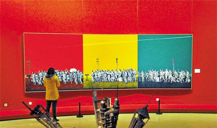 進(jìn)入中國(guó)美術(shù)館正中圓廳,巨幅三聯(lián)作《時(shí)代之歌——闖·創(chuàng)·窗》格外令人矚目。廣東省美術(shù)家協(xié)會(huì)副主席、深圳市文聯(lián)專(zhuān)職副主席梁宇向記者表示,“我畫(huà)的是不同時(shí)期的普普通通的深圳建設(shè)者,正是他們鑄就了深圳發(fā)展的奇跡?!?/p>
