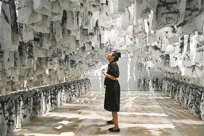 記者在OCAT深圳館展出的“水墨無疆”主題展上看到,從水墨多媒體到燈光裝置,從二維到三維,從靜態(tài)到動態(tài),從平面到立體等多種形式的作品,為觀眾帶來了全新的視覺體驗,開拓出古老中國水墨在當代的各種可能性。在華·美術館一樓展出的是“攬古爍今”主題展上,策展人吳洪亮邀請了12位藝術家,試圖以多維的方式呈現他們身在現代、心有傳統的藝術追求。主題展“筆墨至式”在華·美術館展出,策展人尚輝邀請國內12位獨具筆墨特色的藝術家展示個性化的作品。