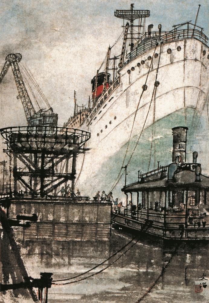 宋文治對廣東地區(qū)的關(guān)注始于20世紀(jì)的60年代。他在1960年參加江蘇國畫院組織的行程二萬三千里的寫生活動(dòng)中,經(jīng)過廣州時(shí)就創(chuàng)作了《廣州造船廠》,罕見地運(yùn)用山水畫技法表現(xiàn)現(xiàn)代工業(yè)題材。