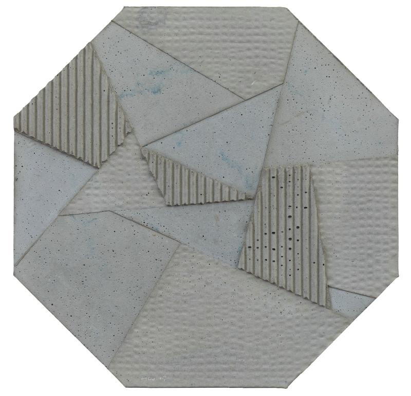 自2013年王豪開始以水泥作為個人創(chuàng)作媒介以來,三個系列“寂”、“樸”、“遠”并行展開?!凹拧焙汀皹恪睆娬{(diào)水泥作品的靜態(tài)特征,不論是單件作品還是多件組合作品,在水泥材料的細(xì)微變化與色塊搭配上,力求傳達出一種寧靜、樸拙的整體氣息;“樸”系列在形式上更為豐富,不僅嘗試使用斜線、三角形乃至圓形,還探索富于中國古典韻味的形式表達(例如對中國古代手卷的模擬);“遠”系列的名稱則來源于中國傳統(tǒng)山水繪畫所特有的透視技法“三遠”概念,這系列作品意圖通過畫面的動態(tài)表現(xiàn)打破二維空間限定,拓展平面繪畫的深度與廣度,從美學(xué)意境上與高遠、深遠、平遠相融合。
