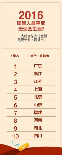 支付寶發(fā)布2016全民賬單:廣東最享受無(wú)現(xiàn)金生活