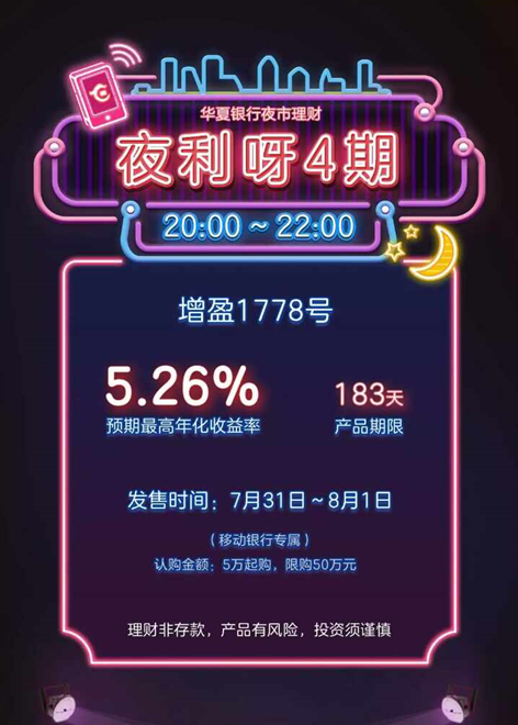 華夏銀行理財(cái)開夜市 高收益產(chǎn)品晚上開賣