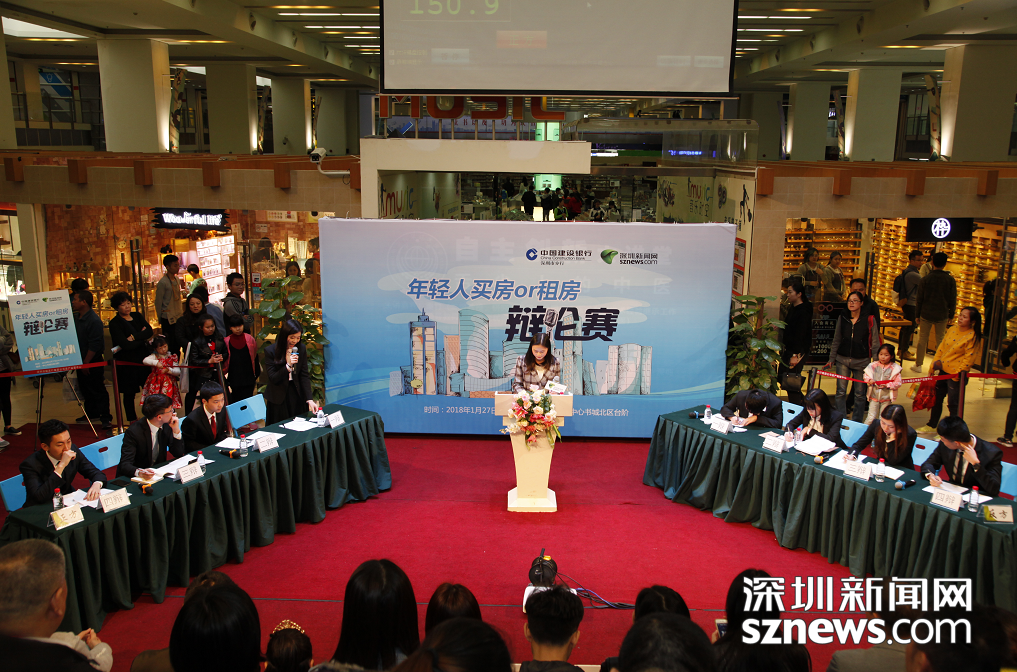 深圳新聞網(wǎng)訊 房是老百姓安身立命之所,是溫暖的港灣。買房、租房正是大家茶余飯后最關(guān)心的話題。隨著“租售同權(quán)”概念的提出,在住房制度改革、大力推進(jìn)住房長效機(jī)制建設(shè)的背景下年輕人到底是該窮其一生做“房奴”買房呢?還是追求生活品質(zhì)走進(jìn)租房新時(shí)代呢?為了聽到關(guān)于這個(gè)話題的更多聲音,了解更多人的看法,1月27日下午,由深圳新聞網(wǎng)聯(lián)合中國建設(shè)銀行深圳市分行主辦的《年輕人買房VS租房》辯論賽在中心書城北臺(tái)階激情開賽。