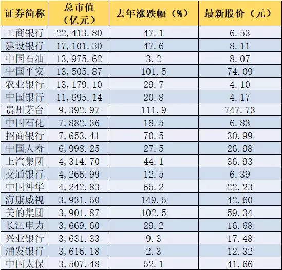 據(jù)匯大數(shù)據(jù)終端統(tǒng)計(jì),截止到今年3月20日,中國平安的市值為1.35萬億,僅次于工商銀行、建設(shè)銀行和中國石油。在市值排名前20名的公司中,去年全年股價(jià)漲幅在100%以上的公司僅有4家,分別是??低暋①F州茅臺(tái)、美的集團(tuán)和中國平安,漲幅分別為149.5%,111.9%、102.5%和101.5%。