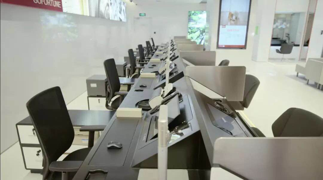 在客戶隱私保護方面,招行3.0網(wǎng)點也可謂是下足了功夫,傳統(tǒng)聯(lián)排的理財柜臺設(shè)計成了小隔間,增加了私密性。金葵花區(qū)所有的洽談間都配備了霧化玻璃,沒有客戶的時候,玻璃呈透明狀態(tài),有客戶的時候,玻璃就可以一鍵霧化,有效保護客戶隱私。
