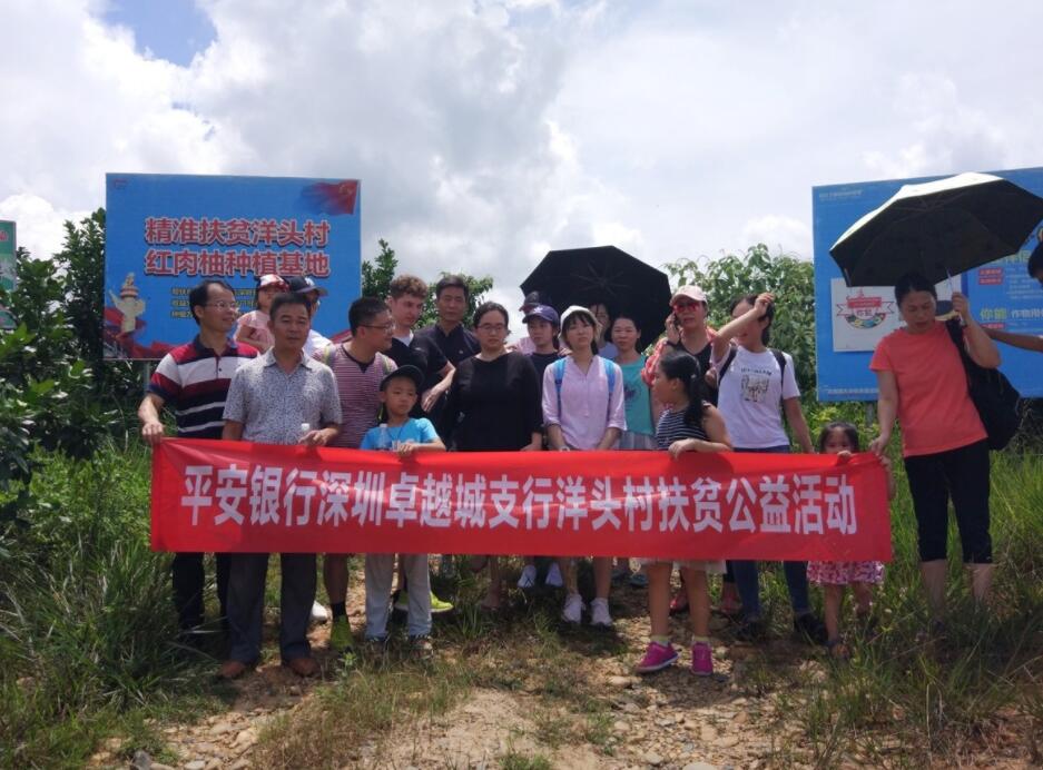 深圳新聞網(wǎng)訊 8月19日上午,為響應平安集團“三村工程”建設和平安銀行總、分行黨委關(guān)于扶貧工作的號召,踐行社會責任,平安銀行深圳卓越城支行客戶、員工一行25人前往該行對口扶貧村紫金縣龍窩鎮(zhèn)洋頭村開展了扶貧公益活動。