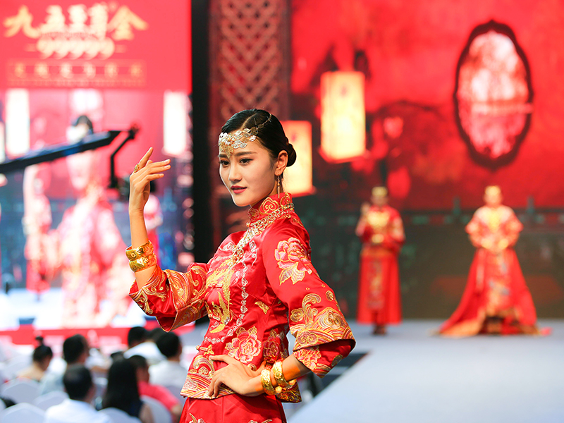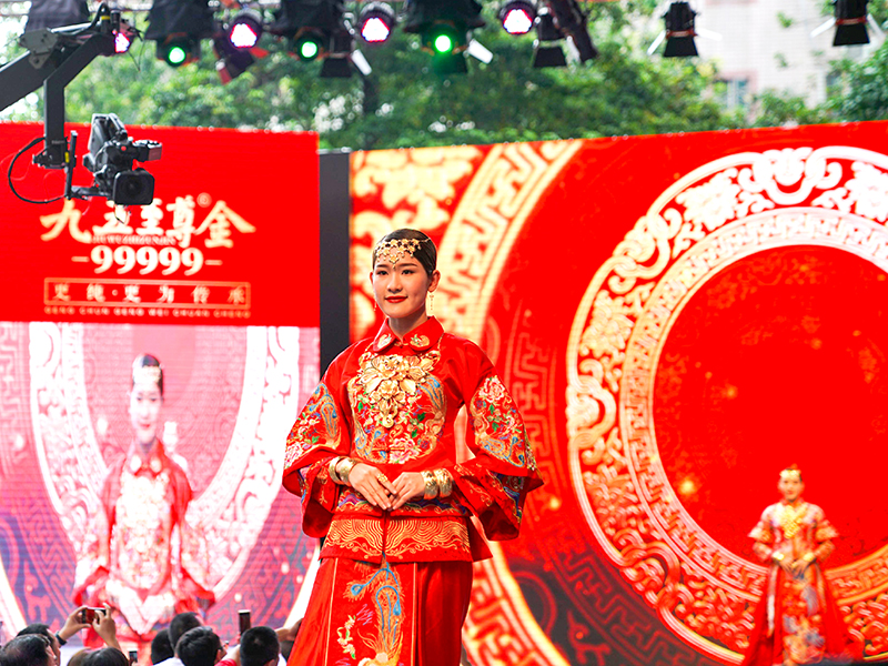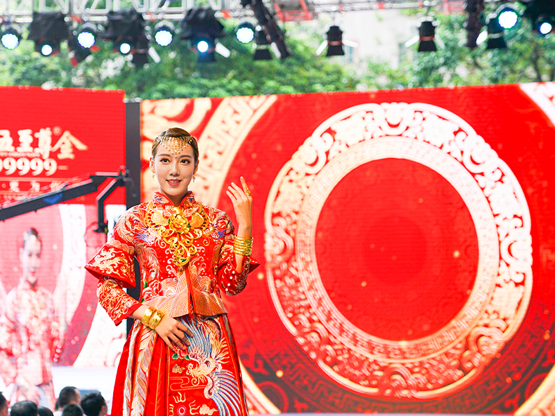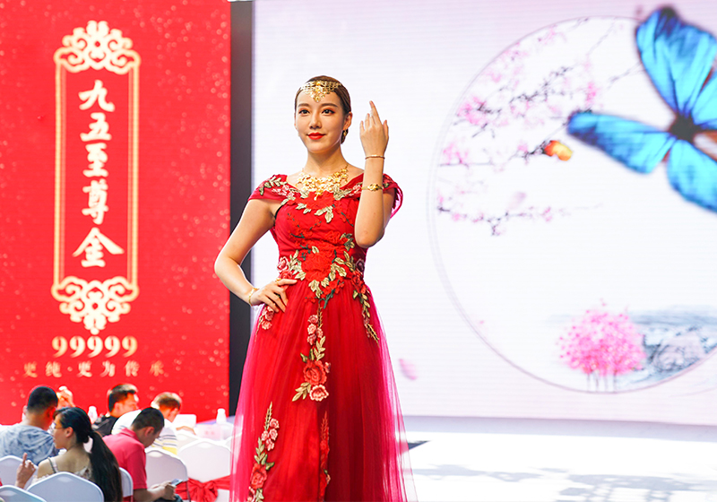 黃金文化與中國傳統(tǒng)婚慶文化淵源久遠,從古自今,黃金有情比金堅之意,有滿滿的喜慶之感,在嫁娶之時通常作為聘禮中的重頭戲。結(jié)婚三金通常指的是項鏈、手鐲、戒指,寓意夫妻情比金堅,一生一世永相隨之意,因此這美好的寄愿習(xí)俗一直被傳承至今。黃金又是財富、身份的象征,結(jié)婚佩戴黃金首飾,彰顯家族的財富、地位與榮譽,飽含家族人濃郁的情感與欣喜,可代代傳承!九五至尊金至囍新娘演繹的中華黃金婚慶文化,唯美唯俏,牽動著每個人的心,掀起了中華黃金婚慶文化的熱潮。
