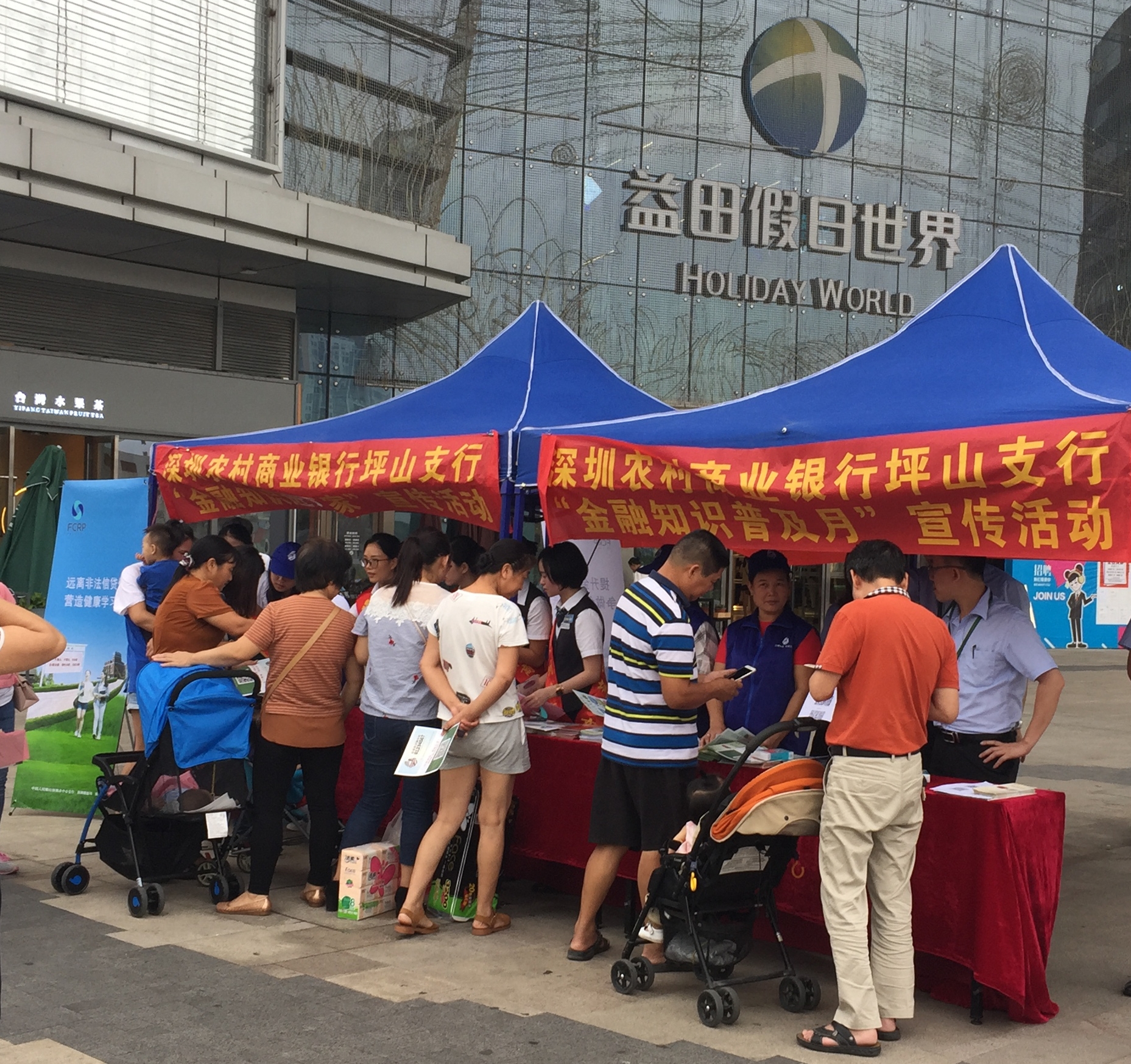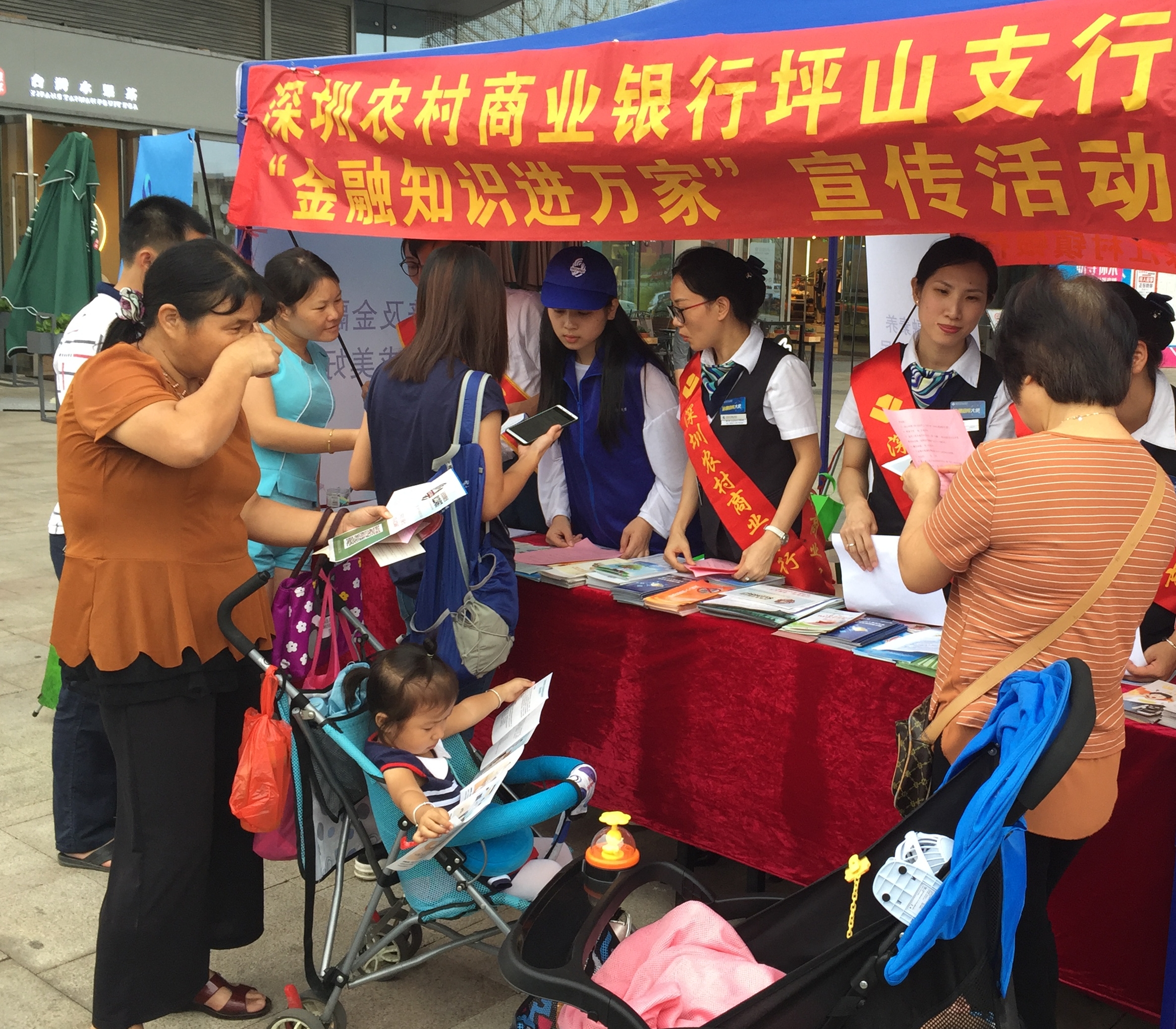 深圳農(nóng)村商業(yè)銀行憑借其在坪山區(qū)多達(dá)15個(gè)營(yíng)業(yè)網(wǎng)點(diǎn)及66年來(lái)金融服務(wù)的優(yōu)勢(shì),送金融知識(shí)進(jìn)校區(qū)、進(jìn)社區(qū)、進(jìn)廠區(qū)、進(jìn)入人流密集區(qū)域。