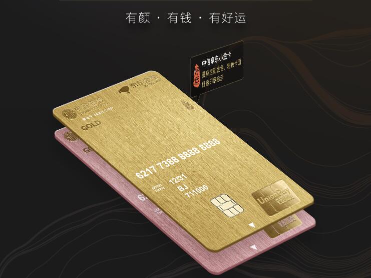 中信銀行京東小金卡按照中信銀行貴賓客戶(hù)身份的規(guī)格定制和設(shè)計(jì),顏色分金色和玫瑰金兩種,卡面為符合時(shí)尚潮流的豎版設(shè)計(jì),簡(jiǎn)約大方、典雅別致,卡面右上方還有一個(gè)靈動(dòng)的中國(guó)印,內(nèi)嵌“好運(yùn)”二字。