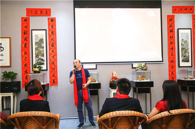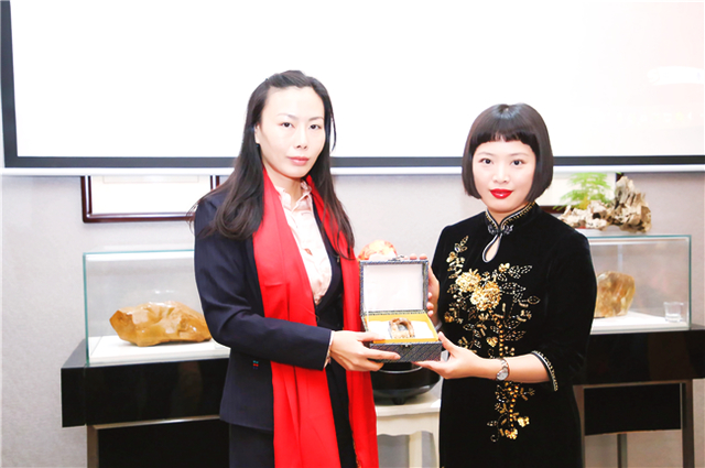 自古書法印章不分家,作品必須蓋印才算完整。本次活動(dòng)場(chǎng)地提供田黃博物館、希雍天石董事長(zhǎng)繆建生為到場(chǎng)嘉賓和校友,受邀分享田黃石科普知識(shí),介紹歷經(jīng)1.8億萬年形成的田黃石種類及特點(diǎn)。  歡聚活動(dòng)上,田黃博物館特別挑選了一枚“溫、潤(rùn)、細(xì)、膩、凝、潔” 、印面方正碩大,雙龍雕刻立體,栩栩如生的昌化田黃貫斗雙龍印璽,捐贈(zèng)給文學(xué)社。 收到如此珍貴的禮物,求是文學(xué)社秘書長(zhǎng)樓蓉表示:非常感謝田黃博物館的支持與厚禮,后期將委托機(jī)構(gòu)對(duì)這塊印石義拍或義賣,所得將以求是文學(xué)社和田黃博物館名義,捐贈(zèng)給公益項(xiàng)目,會(huì)讓這一珍貴的禮物,發(fā)揮更多的社會(huì)價(jià)值。