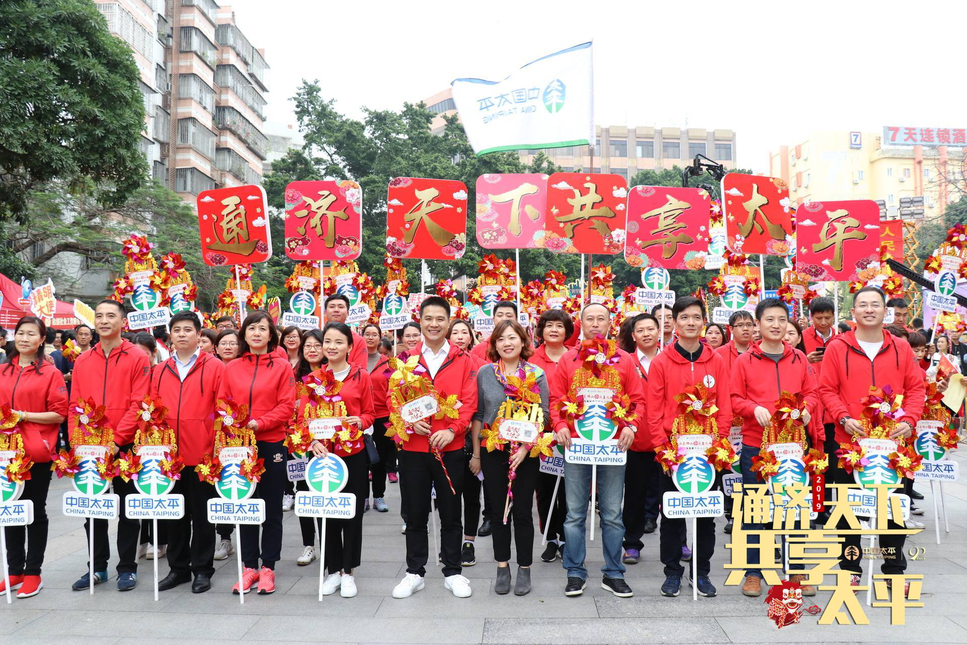 當(dāng)日下午,在佛山市領(lǐng)導(dǎo)宣布活動啟動后,太平人壽佛山分公司、太平財險佛山中心支公司、太平養(yǎng)老佛山中心支公司等50名代表組成企業(yè)方陣團(tuán),與市內(nèi)慈善先進(jìn)人物、市直機(jī)關(guān)人員代表、愛心公益組織、市民代表等12個方陣上萬人組成浩浩蕩蕩的隊伍,從佛山市政府出發(fā),一手拿著金燦燦的風(fēng)車和宣傳標(biāo)語牌,一邊熱情高呼“通濟(jì)天下·共享太平”的宣傳口號通過通濟(jì)橋,向市民展現(xiàn)中國太平良好的精神風(fēng)貌,引來兩邊路人的駐足關(guān)注。根據(jù)官方數(shù)據(jù)顯示,當(dāng)天共計79.52萬人參與行通濟(jì)。