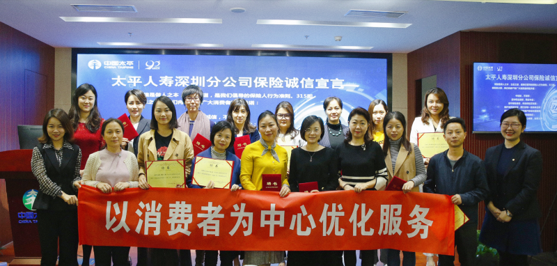 為了進(jìn)一步走近消費(fèi)者,積極傳播“以消費(fèi)者為中心優(yōu)化服務(wù)”的保險(xiǎn)行業(yè)正能量,3.15前夕,太平人壽保險(xiǎn)有限公司深圳分公司舉行誠信保險(xiǎn)監(jiān)督員聘任儀式暨媒體交流會