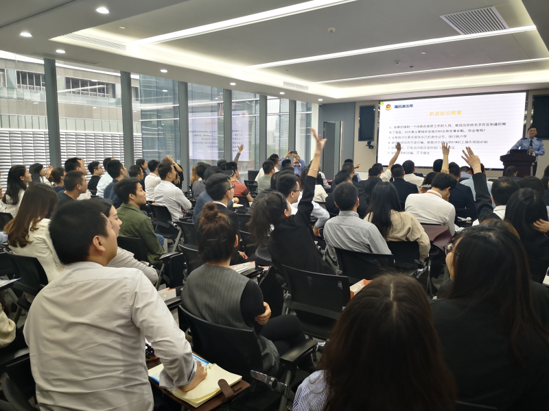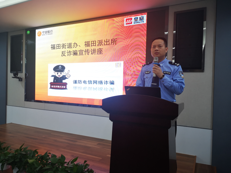 深圳新聞網(wǎng)訊 近年來(lái),信息詐騙案件多發(fā),詐騙分子手段層出不窮,不僅給廣大市民造成了財(cái)產(chǎn)損失,更加將社會(huì)的反詐騙宣傳教育工作推向重要位置。為了普及廣大金融消費(fèi)者的反詐騙知識(shí),同時(shí)讓知識(shí)宣傳更接地氣,近日,寧波銀行深圳分行攜手深圳福田街道辦、福田派出所對(duì)皇庭中心大廈100多位商戶(hù)代表,開(kāi)展了一場(chǎng)教育意義深刻的反詐騙知識(shí)講座。福田區(qū)副所長(zhǎng)羅躍、福田派出所社區(qū)隊(duì)隊(duì)長(zhǎng)莫予寶、福田街道辦政法辦主任馬建忠、皇庭物業(yè)總經(jīng)理吳海兵、寧波銀行深圳分行監(jiān)察保衛(wèi)部副總經(jīng)理陳久桐等9位警銀領(lǐng)導(dǎo)代表出席了本次活動(dòng)。