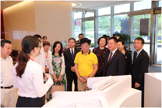 在華夏銀行深圳分行黨委書記、行長陳傳龍的陪同下,深商聯(lián)會長、執(zhí)行會長及各企業(yè)家來到分行營業(yè)部,考察調(diào)研智慧網(wǎng)點建設(shè)情況,在工作人員講解下,現(xiàn)場觀摩體驗了“人臉識別+指靜脈”智能機具應用,對營業(yè)網(wǎng)點智能化、專業(yè)化服務水平給予肯定。同時,參觀黨員之家、職工之家、青年之家,現(xiàn)場感受華夏銀行深圳分行企業(yè)文化建設(shè)。隨后,雙方高管進行了親切座談。