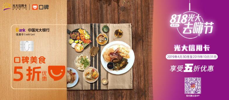 活動(dòng)期間每周一至每周日,光大信用卡用戶且在支付寶實(shí)名認(rèn)證個(gè)人用戶,在口碑平臺(tái)美食行業(yè)商戶處(休閑食品的商戶除外),使用支付寶賬戶綁定的光大銀行信用卡快捷支付進(jìn)行當(dāng)面付消費(fèi),有機(jī)會(huì)享受5折優(yōu)惠,最高15元優(yōu)惠封頂?;顒?dòng)期間每天限前8000個(gè)優(yōu)惠名額,名額有限,用完即止?;顒?dòng)期間同一用戶每月限享1次優(yōu)惠機(jī)會(huì)。(詳見陽光惠生活A(yù)PP或口碑APP銀行卡特惠頻道,具體路徑見活動(dòng)細(xì)則)。
