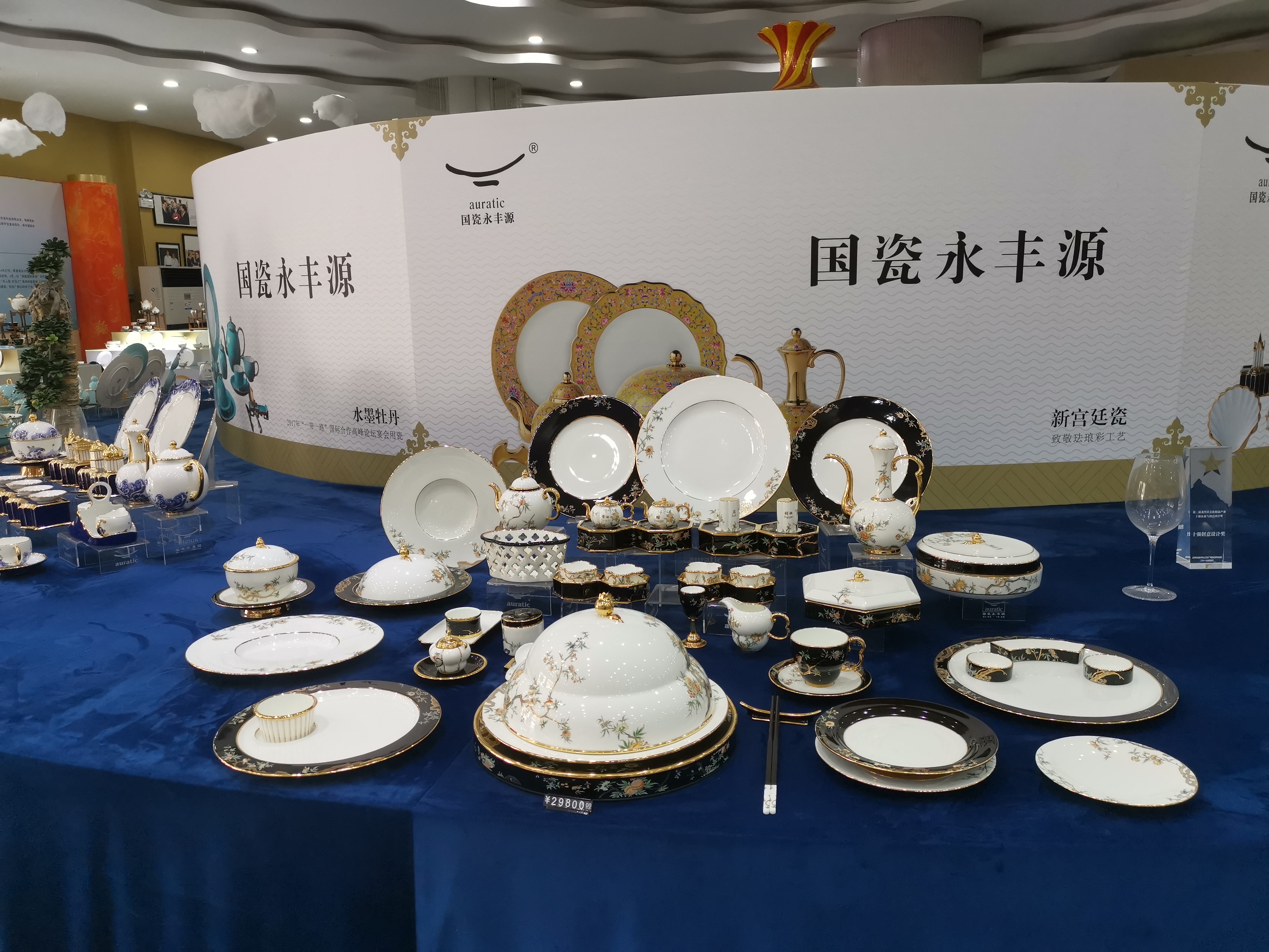從2015年開始,國瓷永豐源生產(chǎn)的瓷器就頻繁出現(xiàn)在國際及國內(nèi)的重大會(huì)議的國宴用餐,以及慶典、節(jié)慶賀禮上。2018年以“先生瓷 ?四海升平”亮相博鰲亞洲論壇年會(huì)宴會(huì),成功款待世界賓朋;2017年承接“一帶一路”國際合作高峰論壇餐具任務(wù);2016年承擔(dān)杭州G20峰會(huì)夫人午宴用瓷設(shè)計(jì);2015年分別承攬中央政府贈(zèng)送西藏50周年與新疆60周年大慶官窯定制任務(wù)……