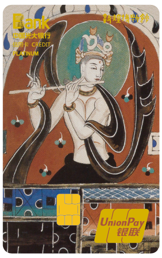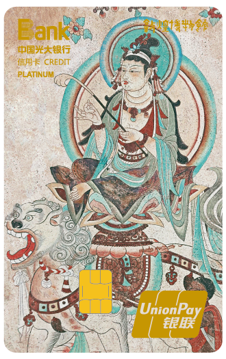 光大敦煌聯(lián)名信用卡卡面設(shè)計(jì)取材于敦煌壁畫,有敦煌大智文殊白金卡、敦煌天宮伎樂白金卡以及敦煌五百強(qiáng)盜成佛菁英白金卡三種信用卡。光大敦煌聯(lián)名信用卡的卡面設(shè)計(jì)靈感均來源于敦煌壁畫,大智文殊白金卡畫面為文殊菩薩結(jié)跏坐于青面獅虬首仙獅背上。文殊菩薩是專司智德、辯才第一的大菩薩,尊號“大智文殊”。天宮伎樂白金卡主體畫面為伎樂天,取材于莫高窟288窟,營造了佛陀講經(jīng)說法時佛國世界歡樂祥和的氛圍。五百強(qiáng)盜成佛菁英白金卡卡面設(shè)計(jì)取自“五百強(qiáng)盜成佛”的壁畫故事,佛用神通使被剜去雙眼的強(qiáng)盜重見光明,并對他們進(jìn)行點(diǎn)化,五百強(qiáng)盜潛心苦修終成五百羅漢。光大敦煌聯(lián)名信用卡的卡面設(shè)計(jì)將傳統(tǒng)文化融入現(xiàn)代金融產(chǎn)品,極具敦煌文化的風(fēng)格。