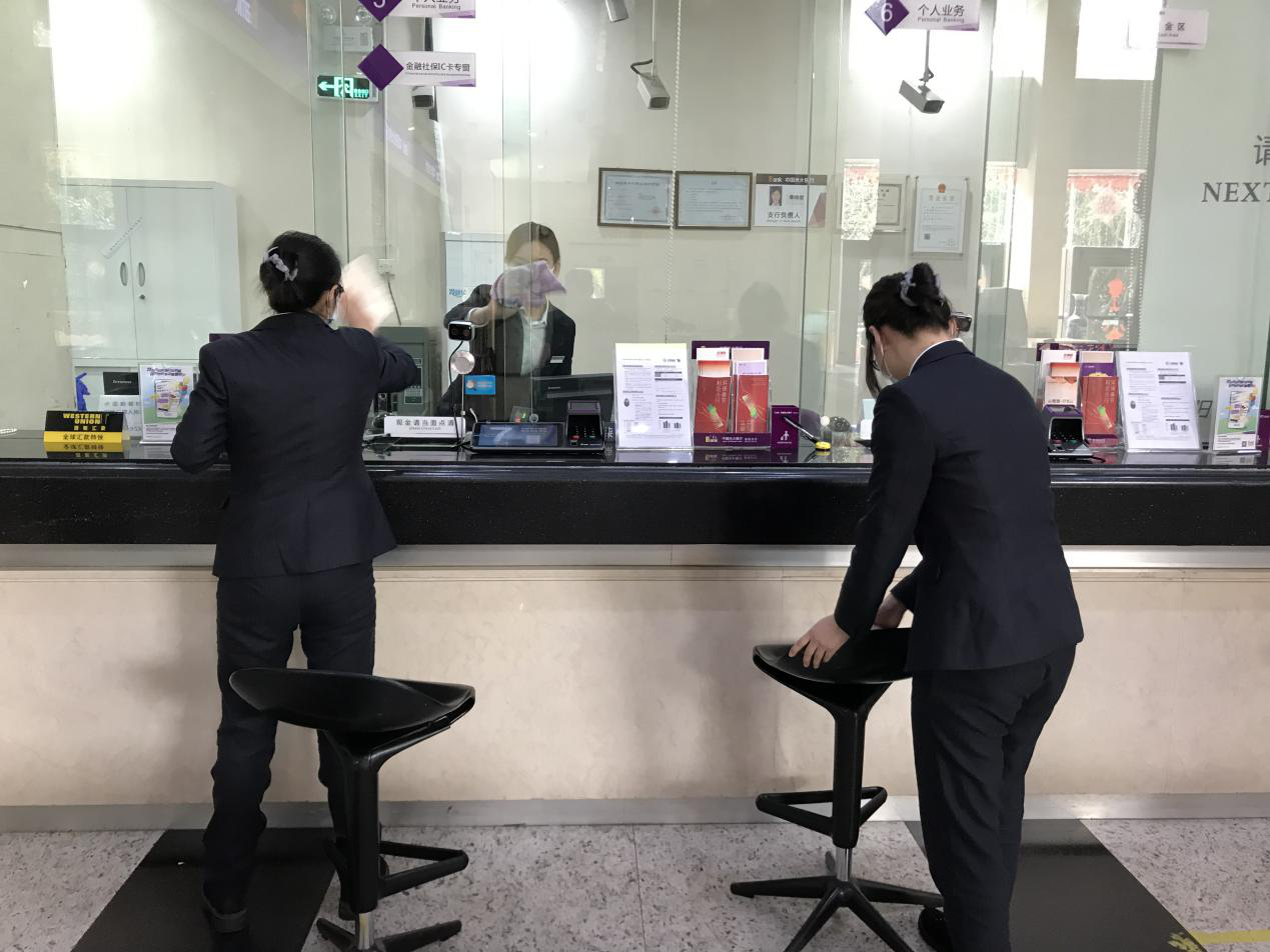 在此期間,為降低疫情傳播風(fēng)險(xiǎn),網(wǎng)點(diǎn)員工每天堅(jiān)持提前到崗,除自身佩戴口罩外,還用消毒液擦拭柜臺內(nèi)外及大堂桌椅和機(jī)器,為來行客戶提供安全舒適的環(huán)境。(通訊員 樓蓉 李昕)