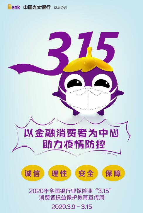 近日,2020年“3·15消費者權(quán)益保護教育宣傳周”正式啟動。中國光大銀行深圳分行積極行動,在滿足特殊時期客戶服務(wù)需求的同時,以“以金融消費者為中心,助力疫情防控”為主題,通過做好線上金融知識宣傳,創(chuàng)新金融服務(wù)模式,推動消費者權(quán)益保護工作。