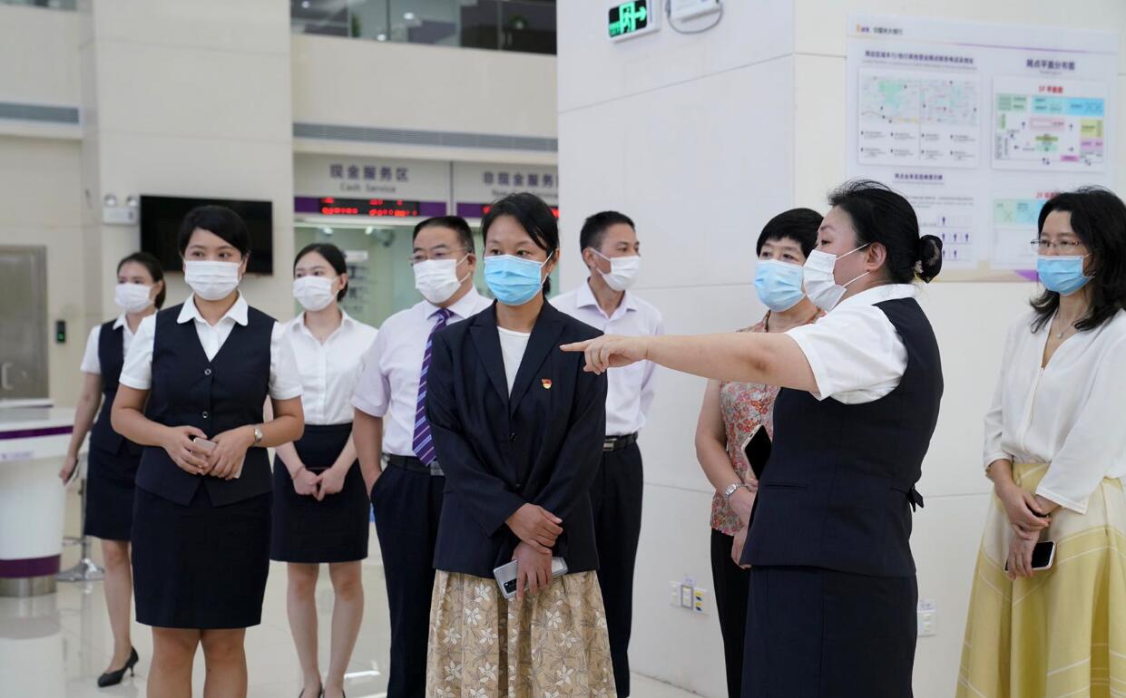 分行黨委高度重視此次調(diào)研活動,紀(jì)委書記方眾部署安排,在分行渠道管理部/消費者權(quán)益保護部和支行負(fù)責(zé)人陪同下,朱會長一行參觀了高新技術(shù)園支行營業(yè)部,對網(wǎng)點的服務(wù)環(huán)境、服務(wù)功能布局、大堂管理、柜面服務(wù)與效率、消費者權(quán)益保護與責(zé)任、服務(wù)文化建設(shè)等情況進(jìn)行了現(xiàn)場調(diào)研,并與相關(guān)負(fù)責(zé)人進(jìn)行了深入交流。胡曉莉主任現(xiàn)場體驗了光大銀行智能柜臺的服務(wù)后,對于其便捷性、智能性予以肯定。