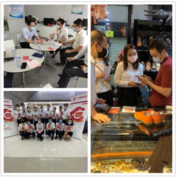 為扎實(shí)做好“六穩(wěn)”工作,貫徹落實(shí)“六?!比蝿?wù),切實(shí)解決普惠金融、小微企業(yè)融資難融資貴等問題,華夏銀行深圳分行在主題活動(dòng)期間組織分行業(yè)務(wù)骨干與經(jīng)營單位一同前往周邊大型市場(chǎng)、商戶聚集地對(duì)龍商貸(深圳版)進(jìn)行推廣,宣傳金融標(biāo)準(zhǔn)在緩解融資難融資貴等工作中的積極作用,增強(qiáng)公眾的金融風(fēng)險(xiǎn)意識(shí)。