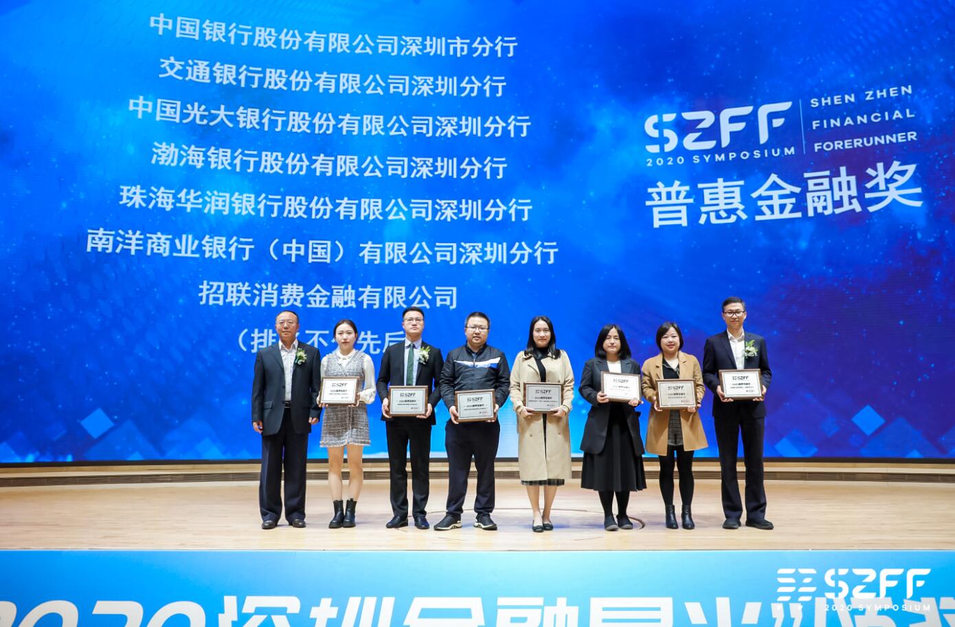深圳新聞網(wǎng)·見(jiàn)圳客戶(hù)端2020年12月30日訊 日前,在由鳳凰網(wǎng)廣東、深圳市金融穩(wěn)定發(fā)展研究院、深圳市銀行業(yè)協(xié)會(huì)、深圳市保險(xiǎn)同業(yè)公會(huì)攜手舉辦“2020深圳金融星光”頒獎(jiǎng)盛典暨“新?lián)?dāng)·深圳金融業(yè)先行示范創(chuàng)新發(fā)展”研討會(huì)(簡(jiǎn)稱(chēng)2020SZFF大會(huì))活動(dòng)中,光大銀行深圳分行摘得2020杰出貢獻(xiàn)獎(jiǎng)、普惠金融獎(jiǎng)、最佳銀行服務(wù)獎(jiǎng)三項(xiàng)大獎(jiǎng),深圳分行營(yíng)業(yè)部理財(cái)經(jīng)理彭雨、龍華民塘支行個(gè)貸經(jīng)理馬小雙、信用卡業(yè)務(wù)部產(chǎn)品經(jīng)理鹿含、公司業(yè)務(wù)管理部副總經(jīng)理趙明、渠道管理/消費(fèi)者權(quán)益保護(hù)部總經(jīng)理樓蓉、辦公室品牌經(jīng)理李昕、辦公室品牌經(jīng)理沈婷等榮獲2020優(yōu)秀星光人物獎(jiǎng)和優(yōu)秀通訊員榮譽(yù)稱(chēng)號(hào)。