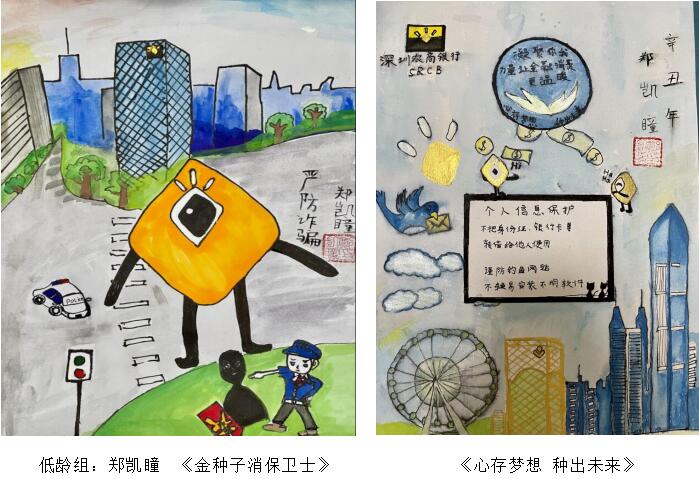 本屆“我是小小繪畫家”消保主題繪畫大賽,圍繞“孩子眼中的消保世界”題材展開(kāi),體現(xiàn)孩子對(duì)消費(fèi)者權(quán)益保護(hù)、金融風(fēng)險(xiǎn)防范、自我保護(hù)能力提升等方面的認(rèn)識(shí),通過(guò)畫筆,描繪孩子眼中的金融消保工作。同時(shí),也是積極落實(shí)中國(guó)人民銀行深圳市中心支行、深圳銀保監(jiān)局、深圳銀促會(huì)組織開(kāi)展的“金融知識(shí)普及月”“金融聯(lián)合教育宣傳月”活動(dòng)號(hào)召,聚焦青少年人群,開(kāi)展金融知識(shí)普及宣教活動(dòng)。