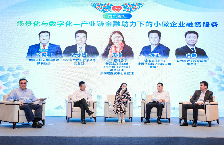 在論壇對(duì)話環(huán)節(jié),工行總行普惠金融事業(yè)部副總經(jīng)理兼網(wǎng)絡(luò)融資中心總經(jīng)理周楊、核心企業(yè)代表中國(guó)燃?xì)饪毓捎邢薰靖笨偛酶咧具h(yuǎn)、供應(yīng)鏈服務(wù)機(jī)構(gòu)代表中企云鏈(北京)金融信息服務(wù)有限公司董事長(zhǎng)劉江和聯(lián)易融數(shù)字科技集團(tuán)董事長(zhǎng)宋群共同探討了如何以融合和創(chuàng)新方式,通過(guò)產(chǎn)業(yè)鏈金融助力小微企業(yè)融資服務(wù),互相交換在產(chǎn)業(yè)鏈金融發(fā)展方面的經(jīng)驗(yàn)和智慧。