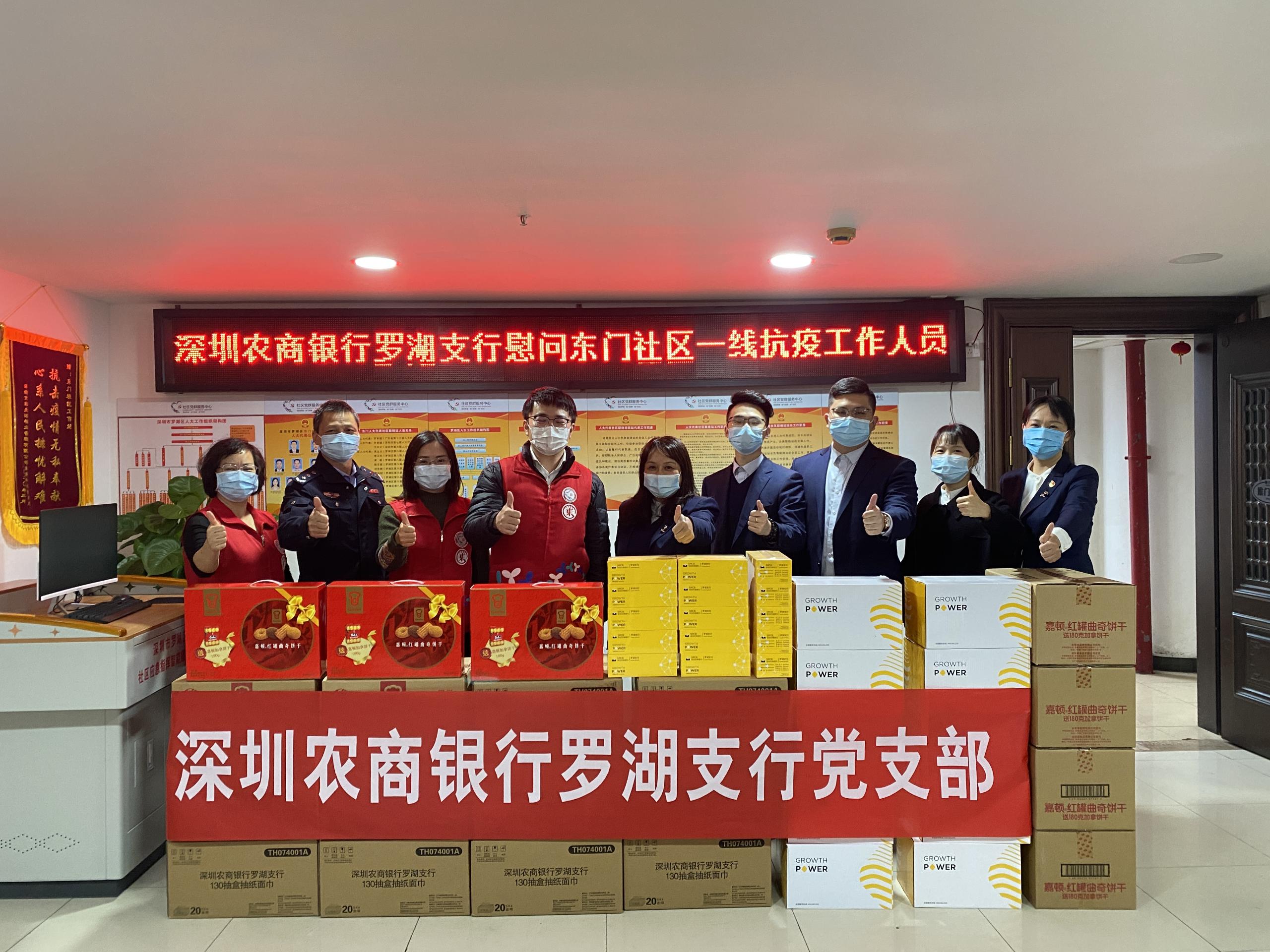 此次慰問活動(dòng)的開展也得到了深圳農(nóng)商銀行羅湖支行企業(yè)客戶的積極響應(yīng)。易普森集團(tuán)、深圳市富寶東門市場(chǎng)管理有限公司在獲悉深圳農(nóng)商銀行此次活動(dòng)后,積極響應(yīng),表示要為羅湖區(qū)做一份貢獻(xiàn),于是與該行攜手為羅湖區(qū)前線抗疫人員送去物資和問候。