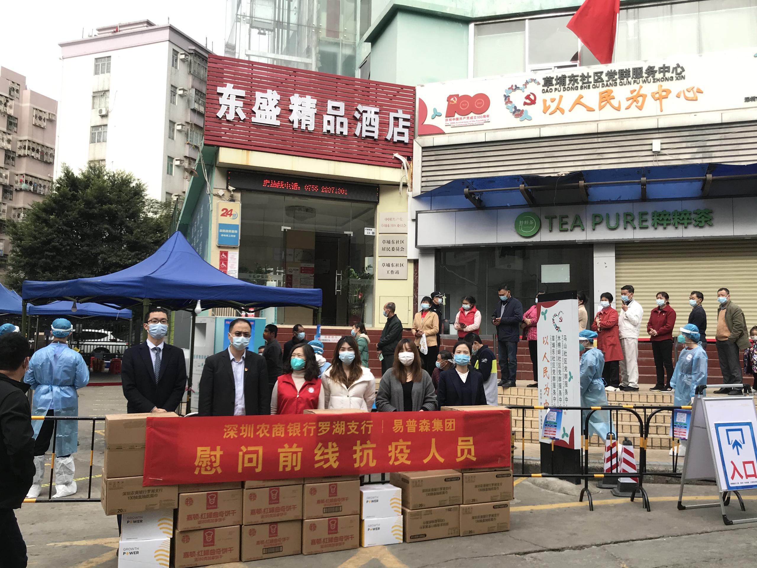 草埔東社區(qū)工作站張廣華書張書記表示:非常感謝前來(lái)慰問的單位和企業(yè),心暖暖的,知道有很多人在關(guān)心他們,累點(diǎn)苦點(diǎn)沒什么。這也是深圳農(nóng)商銀行羅湖支行發(fā)起本次活動(dòng)的初衷,希望物資不僅帶給抗疫人員體能上的補(bǔ)充,同時(shí)也讓他們感受到他們不是一個(gè)人在戰(zhàn)斗,大家一起協(xié)力,共同打贏深圳這場(chǎng)疫情防控阻擊戰(zhàn)。