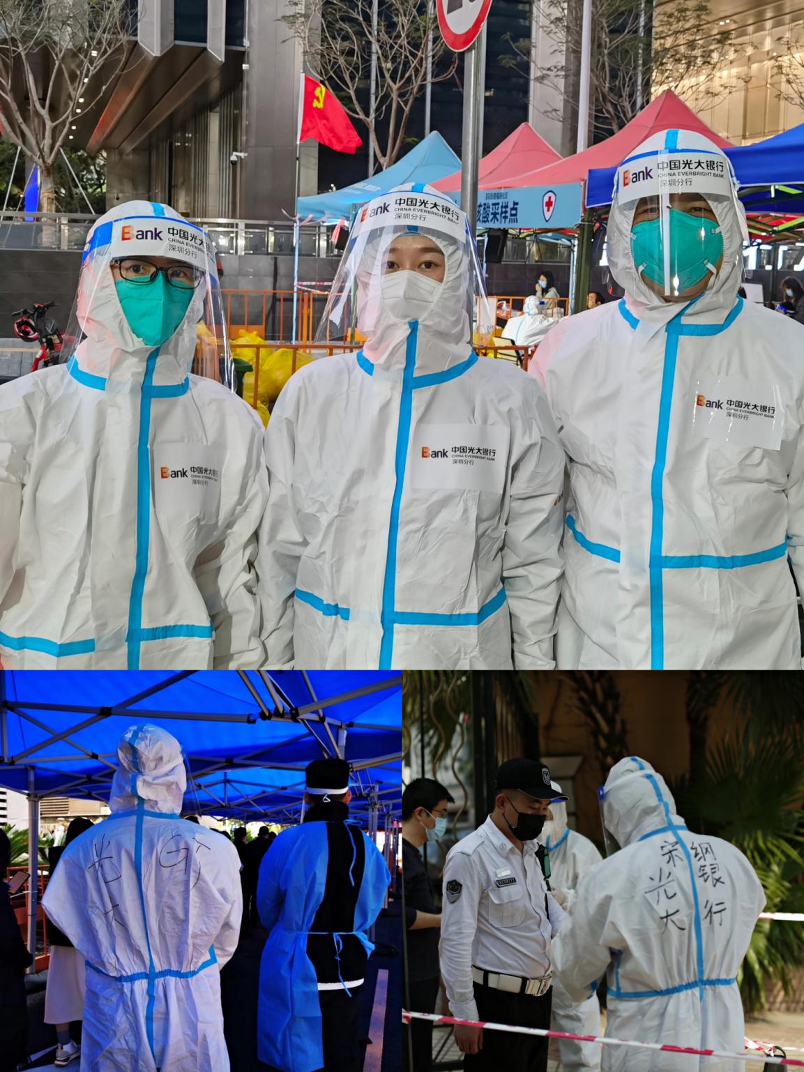 光大證券深圳分公司發(fā)揮基層黨組織戰(zhàn)斗堡壘作用和黨員先鋒模范作用,黨員干部迅速牽頭組建了“光證深分先鋒隊”,下沉基層抗疫一線,黨員同志們換上防護服、手套和隔離面罩深入蓮花街道多個社區(qū),全力協(xié)助醫(yī)護人員做好核酸檢測的輔助工作。從白天到黑夜的堅守,頂著溫差很大的深夜寒風,保持良好狀態(tài),為廣大群眾的身體健康安全提供了有力保障。一句句暖心的提示、一個個忙碌的身影,光大證券深圳分公司的志愿者們,用實際行動,堅定地守護著鵬城的人們!