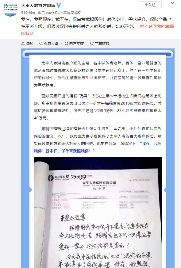 在微博的網(wǎng)絡(luò)互動里,太平人壽積極發(fā)動內(nèi)外勤及客戶,講述了幸福的生活趣事。