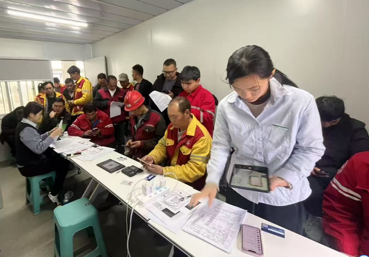 面對困難,陳嘉濤深知客戶需求無小事。他果斷決定帶隊前往現場,為當地員工集中辦理銀行卡開卡及工資代發(fā)相關手續(xù)。從繁華的深圳到偏遠的高原,路途遙遠、舟車勞頓,加上高原反應帶來的身體不適,讓整個團隊面臨嚴峻考驗。但他們沒有絲毫退縮,抵達后便迅速搭建臨時服務點,投入到緊張的工作中。
