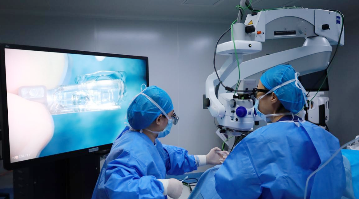 手術當天,齊衛(wèi)主任憑借二十余年的臨床經驗,在 3D 顯微鏡的輔助下穩(wěn)步操作。與傳統(tǒng)手術不同,3D 顯微鏡讓晶體植入的每一個環(huán)節(jié)都直觀可見,晶體的邊緣貼合度、居中位置都能實時把控。整個手術耗時不長,創(chuàng)傷小,朱小姐全程沒有明顯不適感。