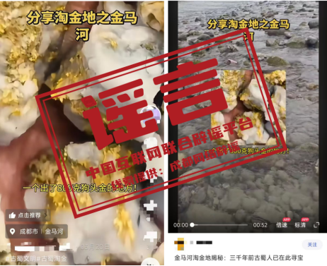 詳情:近期,不少自媒體在網(wǎng)絡平臺分享“都江堰金馬河是淘金地”,稱該點位是“一個出了800克狗頭金的地方!”對此,4月4日,都江堰市水務局發(fā)布情況通報稱,經(jīng)聯(lián)合調查組核實,相關視頻系李某某為博取關注,吸引流量,促進店鋪旅游產(chǎn)品銷售,從AI平臺搜索“淘金”“狗頭金”等內容,拼接剪輯在抖音平臺發(fā)布,視頻內容嚴重誤導公眾。經(jīng)法治宣傳教育,視頻發(fā)布者已主動刪除相關視頻。(來源:“成都網(wǎng)絡辟謠”微信公眾號)