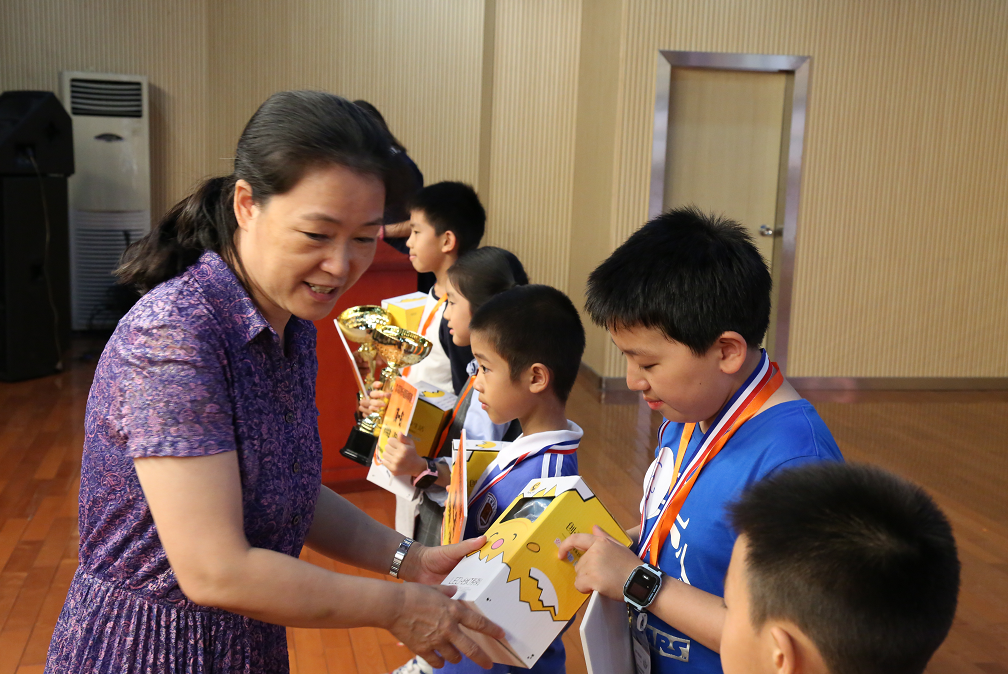 中國國際象棋協(xié)會副主席、深圳棋院院長劉適為獲獎選手頒獎