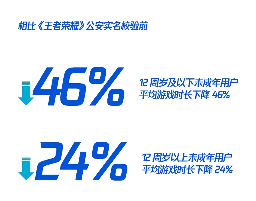 通過公安實(shí)名校驗(yàn)的工作,未成年用戶的身份得到更精準(zhǔn)的判斷,平均游戲時(shí)長(zhǎng)也呈現(xiàn)可見、顯著的下降。
