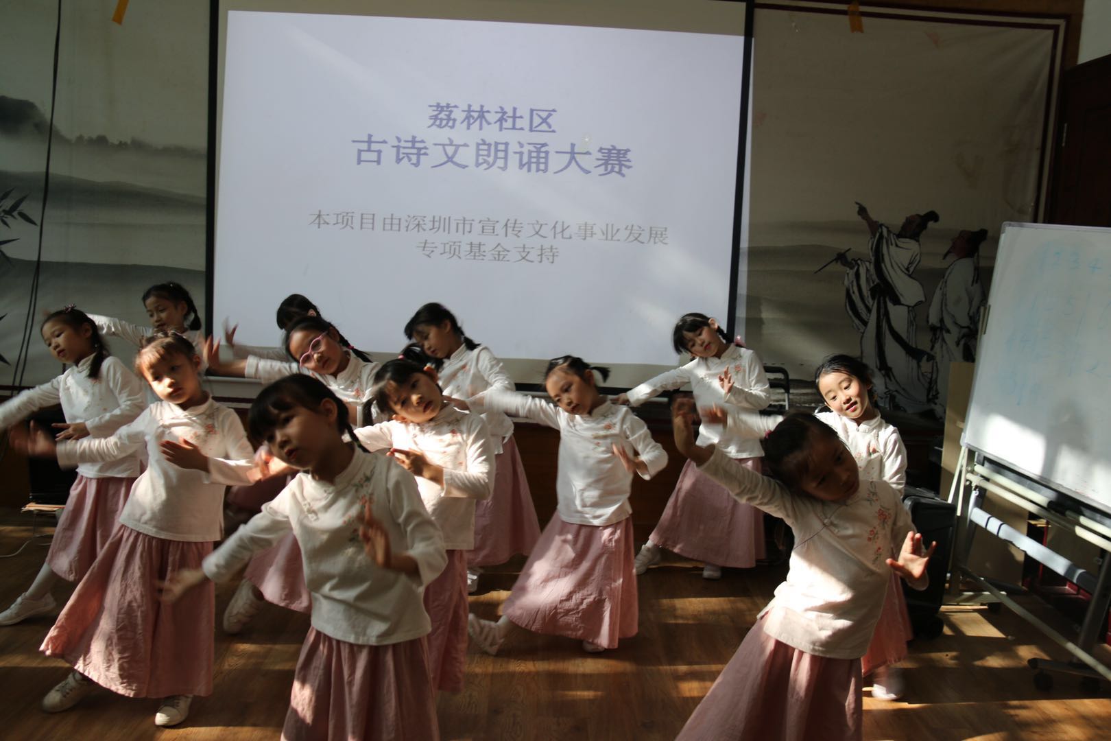 比賽結(jié)束后,荔林社區(qū)歡樂頌朗誦隊為大家?guī)砹怂麄冏孕袆?chuàng)作的《唐詩里的中國》,引發(fā)現(xiàn)場觀眾的熱烈掌聲。而城市山林幼兒園小朋友在老師的帶領(lǐng)下為大家?guī)砹宋璧副硌荨栋偕菩橄取?,小朋友們可愛的舞姿引起了觀眾的陣陣喝彩。最后,評委們?yōu)楂@獎的選手頒發(fā)了獎杯,本次比賽也在社區(qū)居民的依依不舍中圓滿結(jié)束。