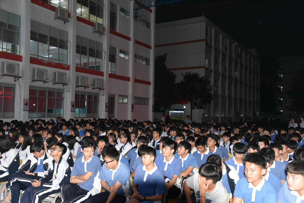 天還亮著,寶山大舞臺前已座無虛席,學(xué)生們精神抖擻,笑容可親,靜候一場文化饗宴。