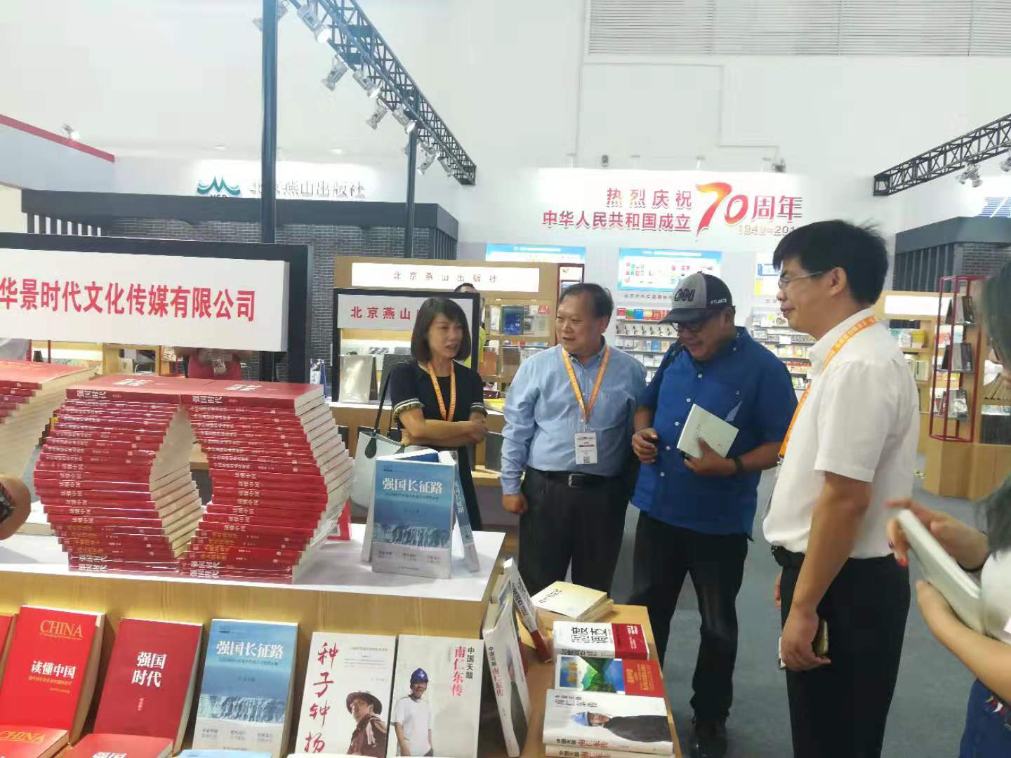 中國北京出版創(chuàng)意產(chǎn)業(yè)園區(qū)企業(yè)北京華景時代文化傳媒有限公司、禹田翰風圖書有限公司、后浪等單位參展,本次展出的亮點圖書包括慶祝新中國成立70周年系列如《跨越(1949-2019)》《中國天眼:南仁東傳》《種子鐘揚》《初心最美》等;展現(xiàn)北京城的歷史文化沿革、經(jīng)濟發(fā)展概貌的《北京秘密:你所不知道的全域文化之城》《北京城》等書;總結中國模式、中國道路,提供全球治理的中國方案的《40年改變中國》《中國道路的成功密碼》《強國長征路》等圖書。