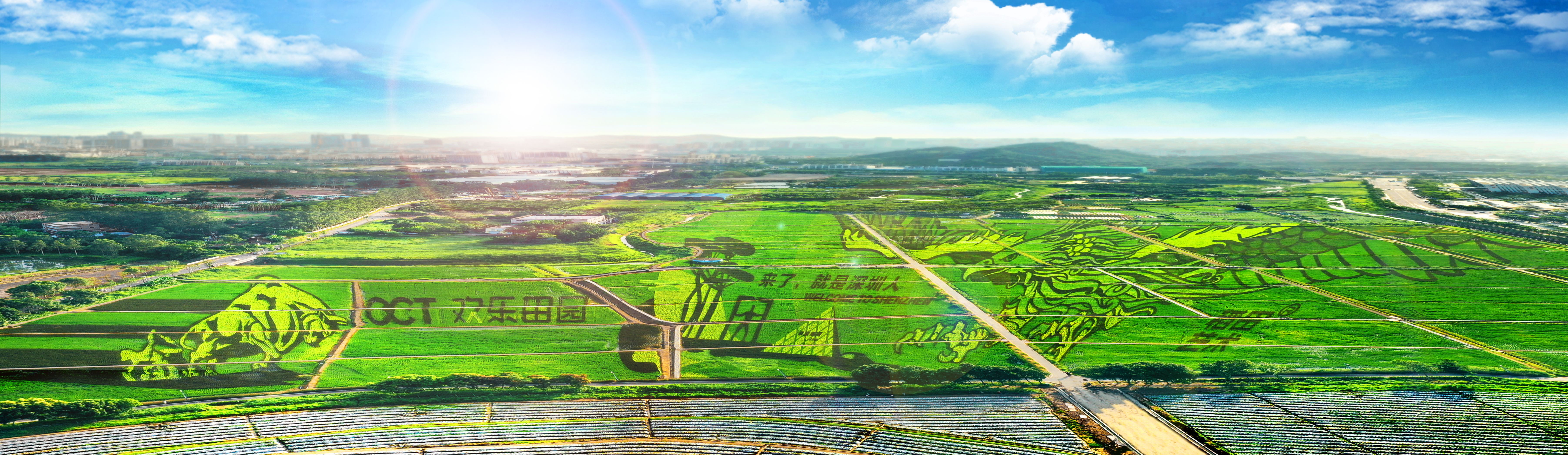 在迎接中華人民共和國(guó)成立70周年之際,田園將向廣大游客全面呈現(xiàn)150000㎡稻田藝術(shù)、400000㎡燦然開放的油葵花海,以及夢(mèng)幻粉黛草等壯美的“大尺度”農(nóng)業(yè)景觀。由紅色、紫色、黃色、白色、綠色5種顏色水稻相繪,以大地為“畫板”,結(jié)合深圳改革開放四十年文明成果,繪成一幅豐收五彩畫卷。登上觀景臺(tái),俯瞰金秋稻浪,捕捉微風(fēng)的軌跡,傾聽自然的聲音,感受大地贈(zèng)予人們豐收的禮物,唱響豐收的田野牧歌!