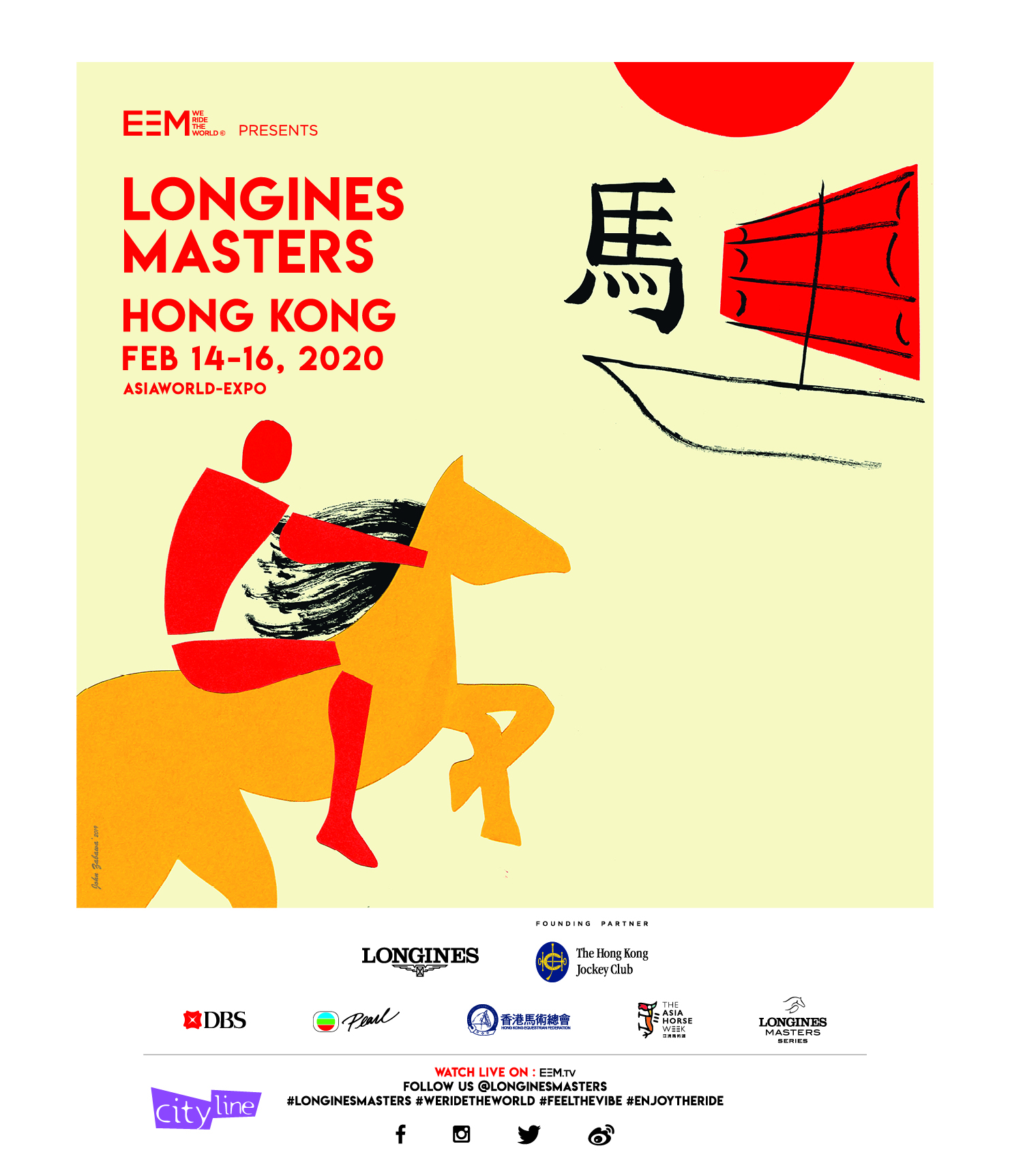 浪琴表馬術(shù)大師賽由EEM創(chuàng)立及主辦,在全球四大著名城市(紐約、巴黎、香港及洛桑)舉行,是全球最享負(fù)盛名的馬術(shù)賽事之一。受到網(wǎng)球界歷史悠久的“大滿(mǎn)貫”錦標(biāo)啟發(fā),“馬術(shù)大師系列賽”的概念迅速擴(kuò)展至海外,集最出色的馬術(shù)障礙賽、娛樂(lè)和時(shí)尚生活體驗(yàn)于一體?!榜R術(shù)大師賽室內(nèi)大滿(mǎn)貫賽事”獲國(guó)際馬聯(lián)(FEI)認(rèn)可,各項(xiàng)賽事傳播至全球逾130個(gè)國(guó)家,約3.2億戶(hù)觀(guān)眾能夠收看其精彩賽事。