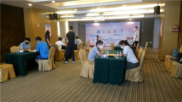比賽分為線上預(yù)賽和線下決賽兩部分,經(jīng)過8月14和15日兩天五輪的激烈爭奪,張文浩、王辰兮、黎鶴群(女),陽柏林、李冰、肖耀希、陳志、李明達八名選手脫穎而出,獲得線下決賽入場券。8月16日線下決賽,單敗淘汰制,容不得半點閃失,高手相爭,凝神靜氣,你來我往。賽場內(nèi)靜寂無聲,棋盤上廝殺火熱。
