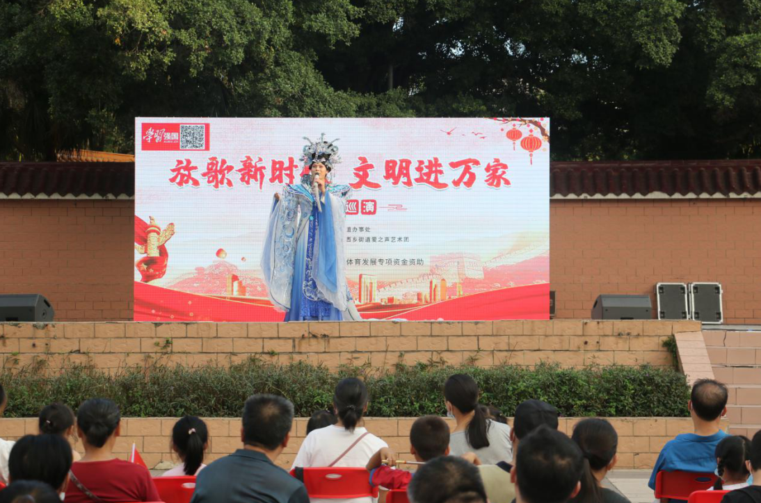 “放歌新時(shí)代 文明進(jìn)萬(wàn)家”文藝巡演由深圳市寶安區(qū)西鄉(xiāng)街道辦主辦,深圳市寶安區(qū)西鄉(xiāng)街道愛(ài)之聲藝術(shù)團(tuán)承辦,寶安區(qū)宣傳文化體育發(fā)展專(zhuān)項(xiàng)資金資助。來(lái)自愛(ài)之聲藝術(shù)團(tuán)的深圳一線(xiàn)文藝工作者們通過(guò)文藝表演的形式為廣大居民奉獻(xiàn)精彩的文藝大餐,用群眾喜聞樂(lè)見(jiàn)的形式展示西鄉(xiāng)發(fā)展變化,再現(xiàn)有志之士在西鄉(xiāng)干事創(chuàng)業(yè)、成就夢(mèng)想的情景,并宣傳了黨的十九屆五中全會(huì)精神,深受群眾歡迎。