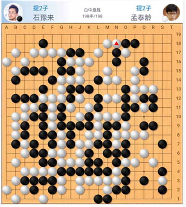 慢棋第三臺由小將石豫來三段執(zhí)黑對陣孟泰齡七段。開局黑左上連續(xù)失誤,導(dǎo)致局面早早進入不利的戰(zhàn)斗。之后黑棋四處求戰(zhàn)終顯勉強,最終以死去中央大龍的代價吃掉白棋右邊一塊大棋,依然以較大差距落敗,石豫來執(zhí)黑中盤負孟泰齡。